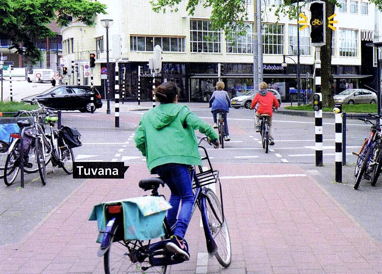 Joen: Tuvana moet nu even goed uitkijken. Als er geen verkeer aankomt, kan ze nog doorfietsen.