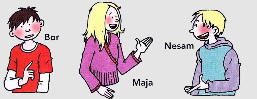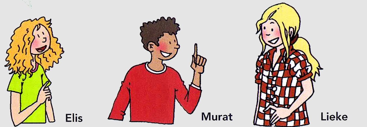 De fietsers wachten voor het rode fietsverkeerslicht.Drie kinderen praten over de foto.Wie heeft gelijk?