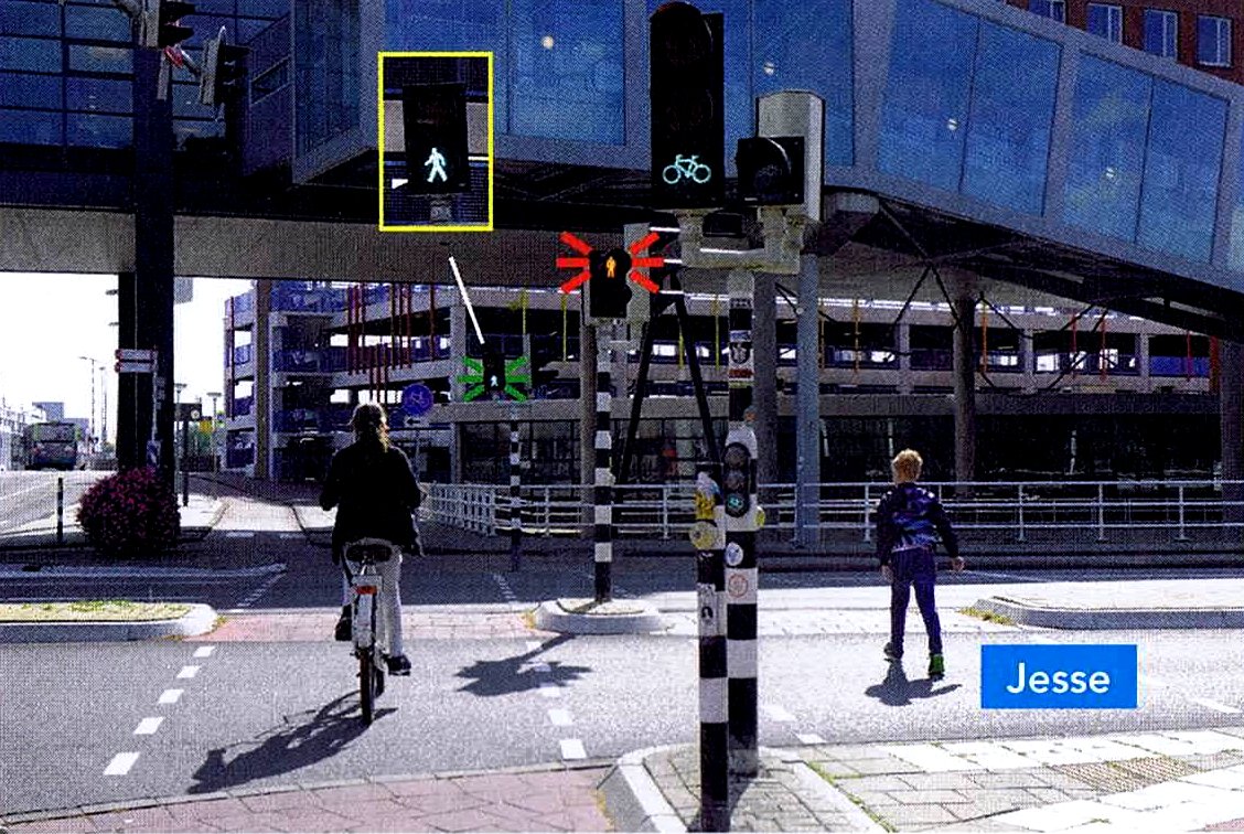 Jesse mag doorlopen naar de overkant. Ook als het weede voetgangerslicht rood wordt.