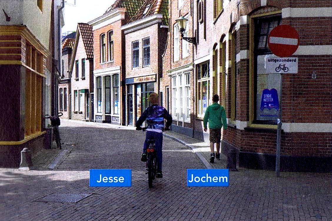Jesse en Ivan moeten de voetganger en de fietser voor laten gaan.