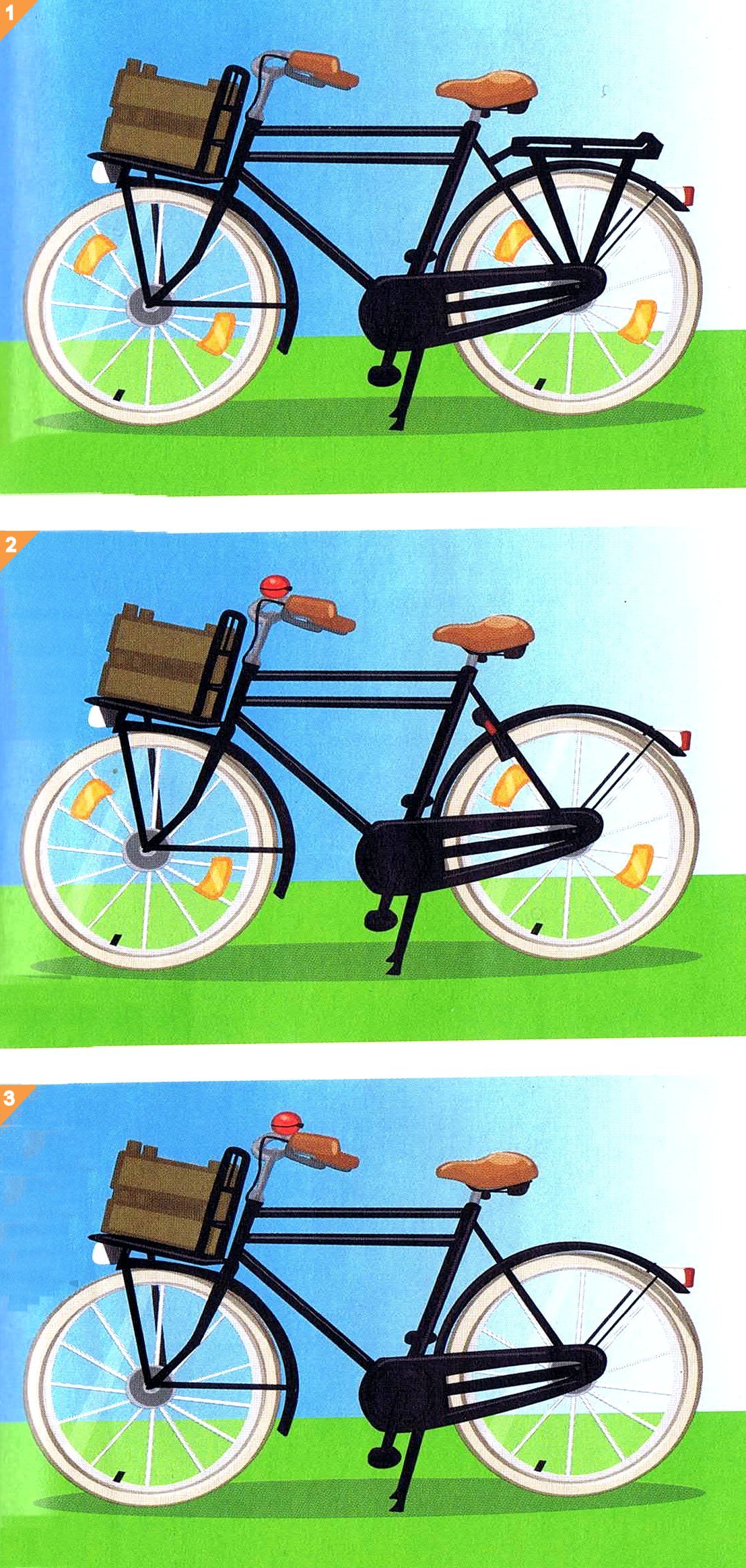 Tegenliggers op de fiets. - De reclameborden bij de bushalte. - De skateboarder.