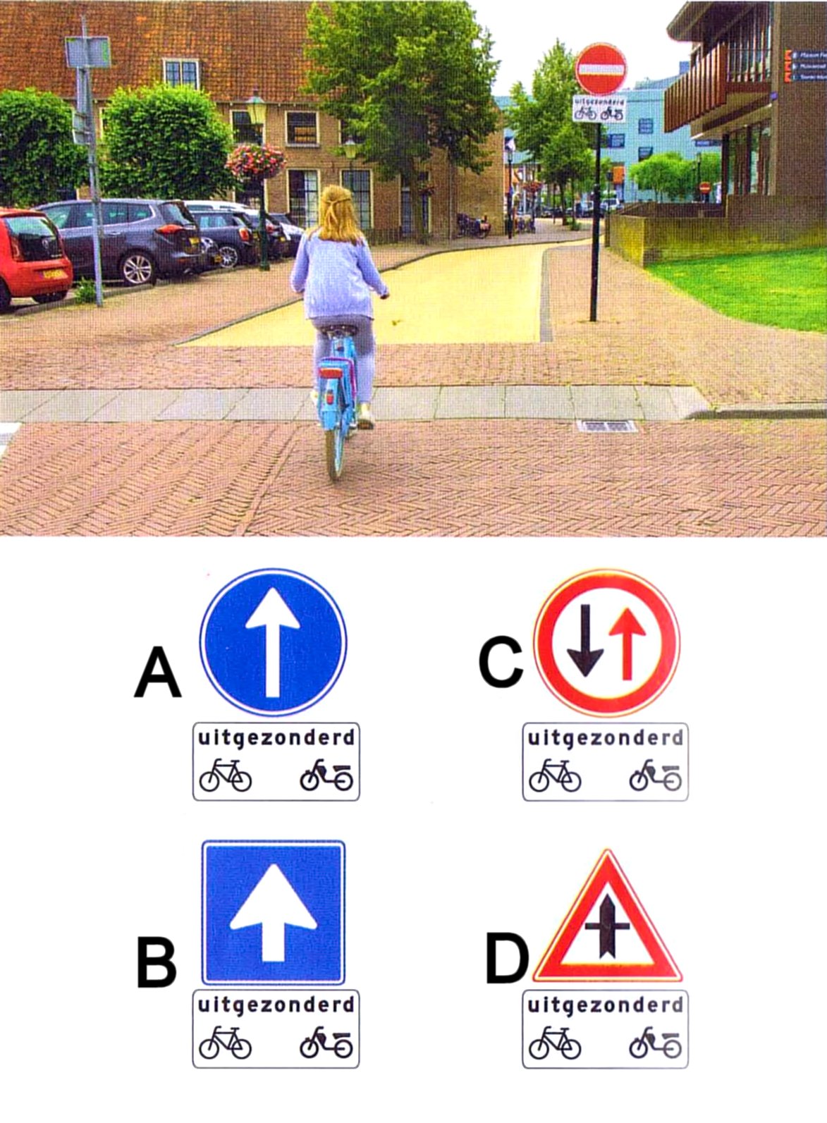 Noor ziet een verkeersbord. Welke beginzin hoort bij dit bord?
